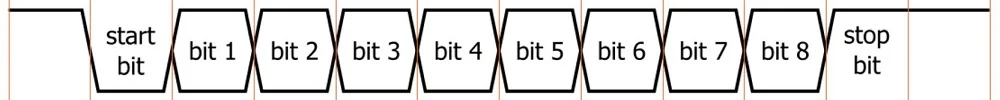 Now lets look at how a typical UART communication works with a 16x oversampling system, 8 data bits, 1 start bit and 1 stop bit.